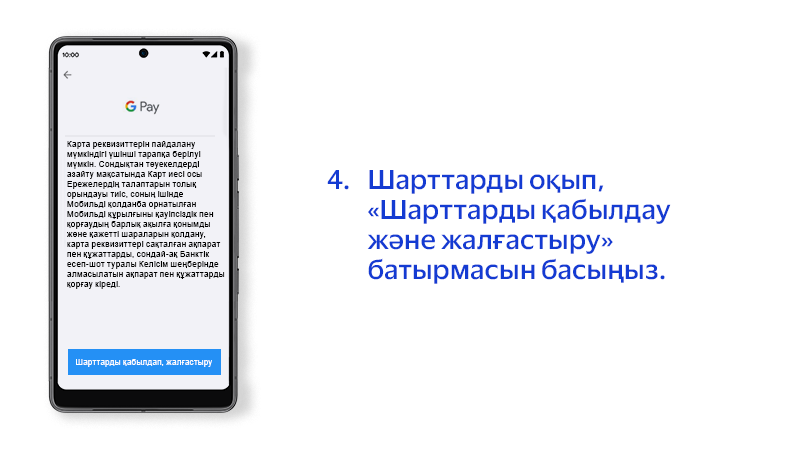 - Дүкенде телефонды құлыптан босатып, терминалға жақындатыңыз.