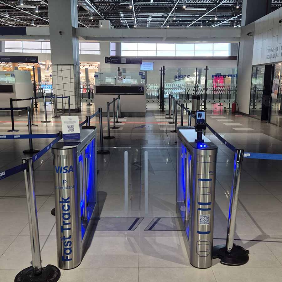 - Fast Track турникеті 3-деңгейде (ұшу деңгейі) авиация қауіпсіздігін қадағалау аймағының оң жағында.
