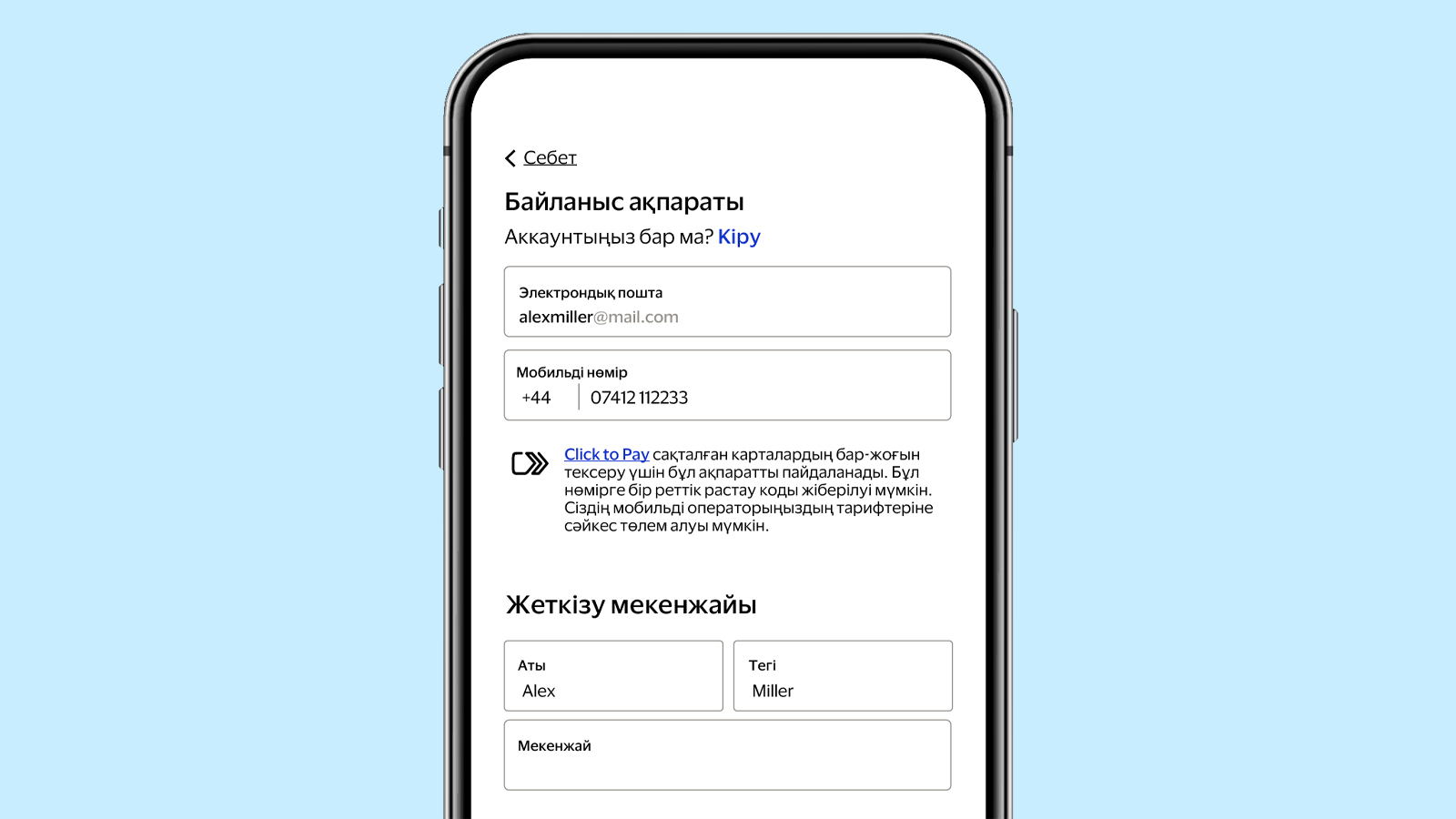 EMV токенделген шешімі ретінде әзірленген Click to Pay клиенттерге онлайн тапсырысты қауіпсіз әрі оңай рәсімдеуге және төлеуге көмектеседі.¹